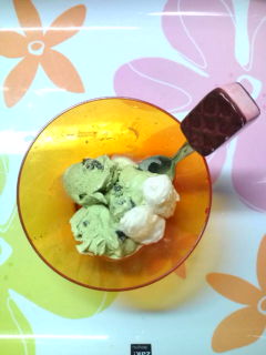 そんなわけというか、せっかく黒豆を別の食べ方で出来るというので、鬼男君に言われてコンビニで抹茶とバニラのアイスを買ってきた。