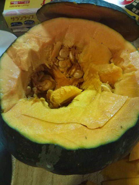 ちなみに器にしたカボチャはその後、ちゃんと普通に煮物とかにして食べた。