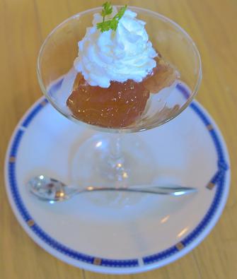 ひんやりと冷たい紅茶の寒天ゼリー。シロップをかけて芭蕉さんに提供すれば、飲むように食べてしまった。